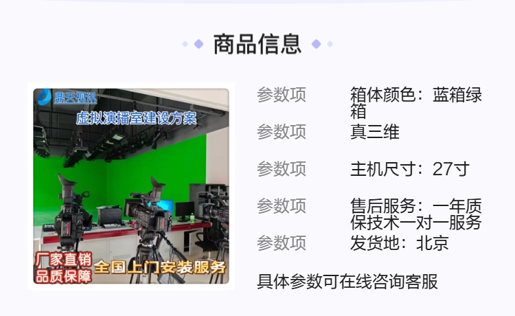 北京鼎天视讯科技有限公司在虚拟演播室建设中,注重每一个技术细节,从蓝绿箱材质选择、灯光色温调节,到声学环境测试,均有一套科学方案。公司拥有专业的项目团队,提供从设计规划到安装调试及后期培训的全流程服务,确保校园电视台顺利运作。