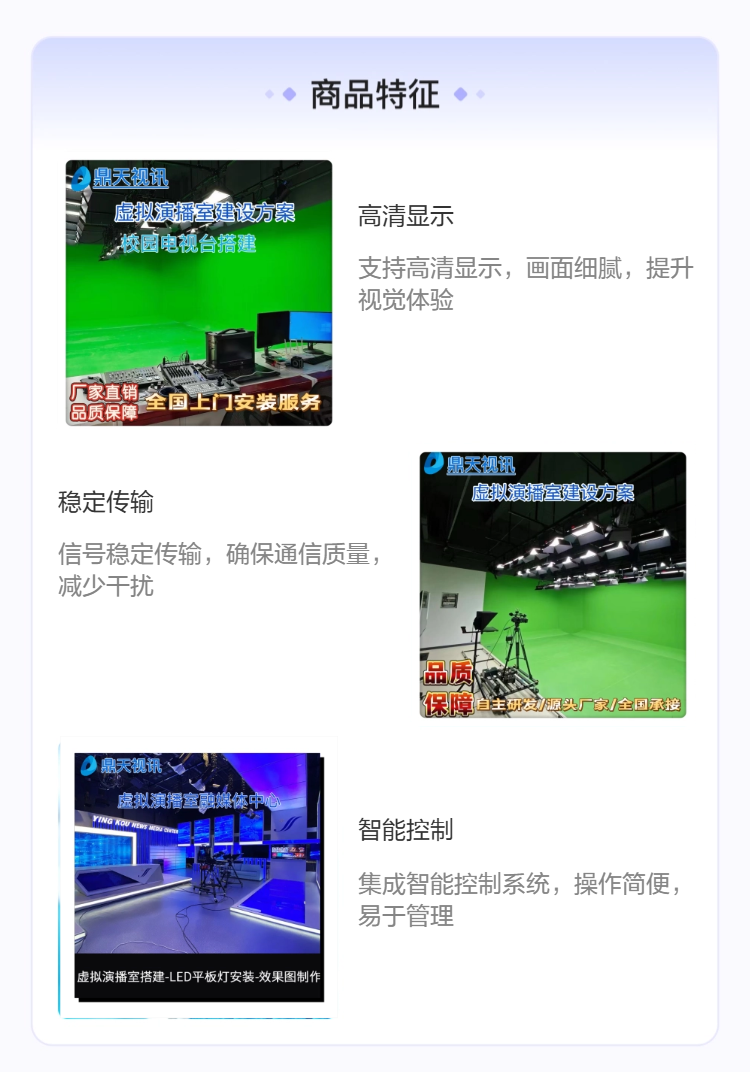随着技术的发展,虚拟演播室已成为现代校园电视台不可或缺的组成部分。北京鼎天视讯科技有限公司凭借先进的技术和丰富的行业经验,推出了鼎天视讯虚拟演播室校园电视台蓝绿箱搭建灯光声学装修AI录播解决方案,助力校园融媒体中心向智能化、数字化升级。